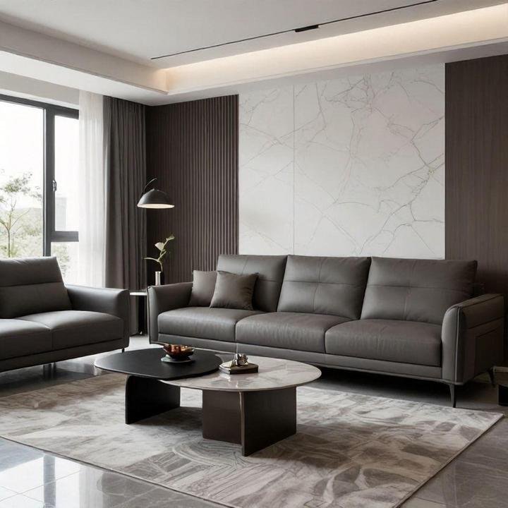 Imagine um sofá cinza com almofadas felpudas ou uma parede lisa contrastando com uma estante de madeira rústica. Essas combinações são o segredo para um ambiente moderno, mas acolhedor.